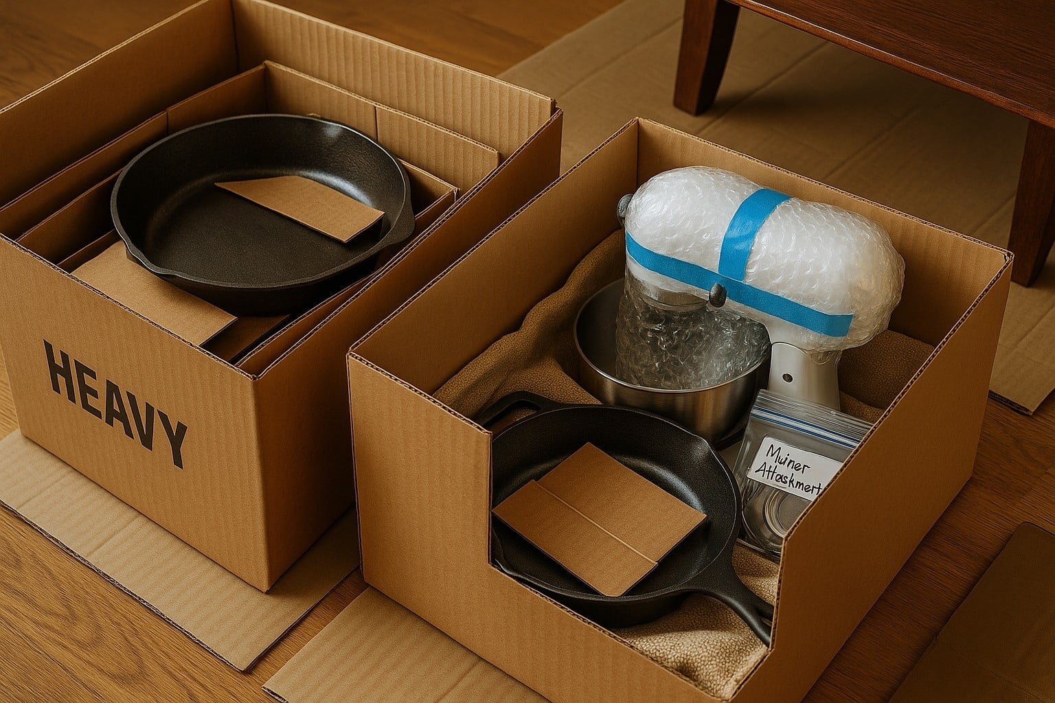 Heavy kitchen gear works like free weights. It can injure a mover and crack a floor if it is not tamed. The rule is small and dense. Use small strong boxes with a double layer of cardboard on the bottom. Line each box with a towel or folded paper to absorb shock.
