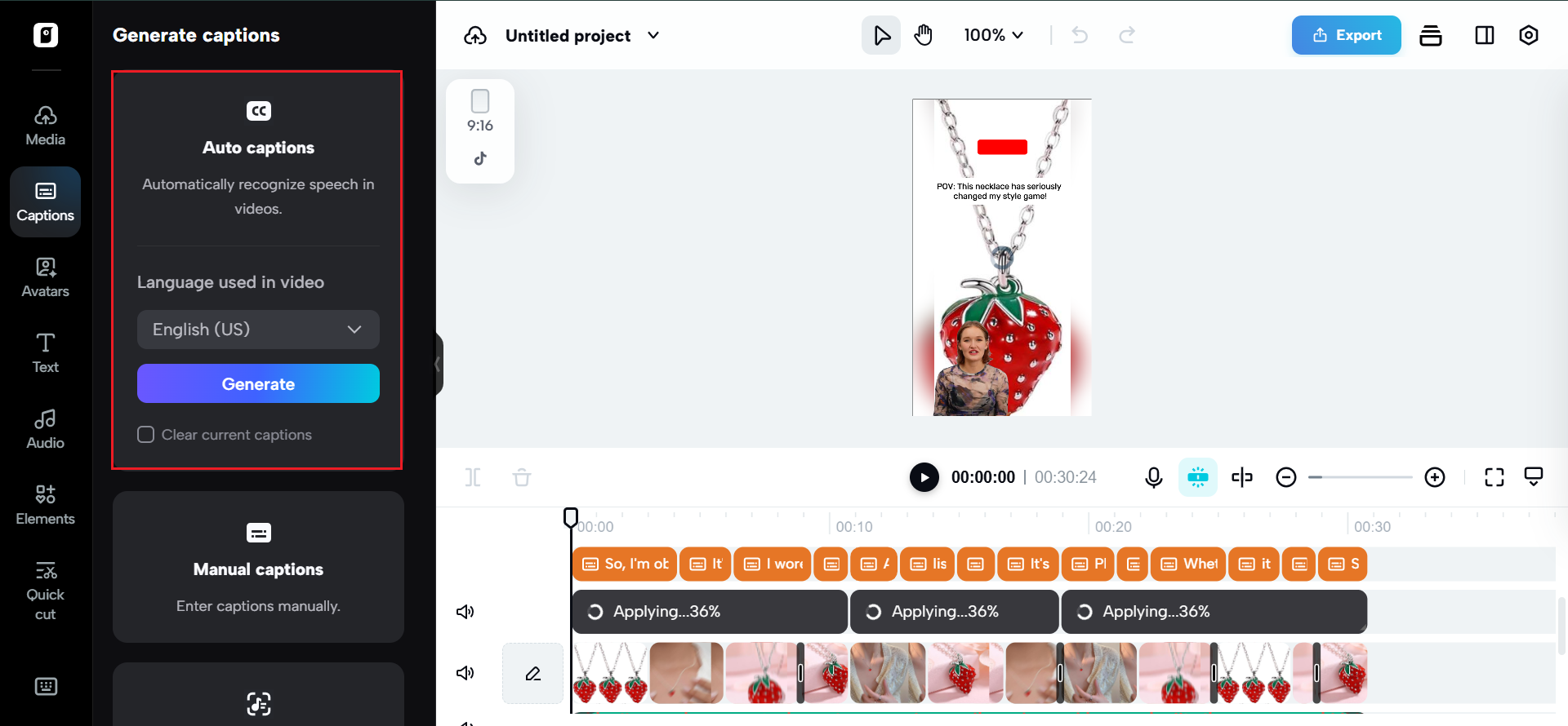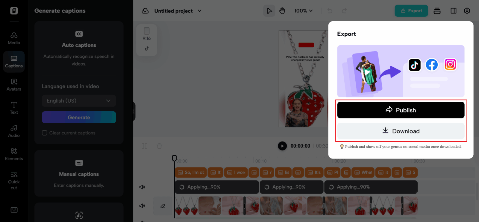 Step 2: Upload video and generate auto-captions